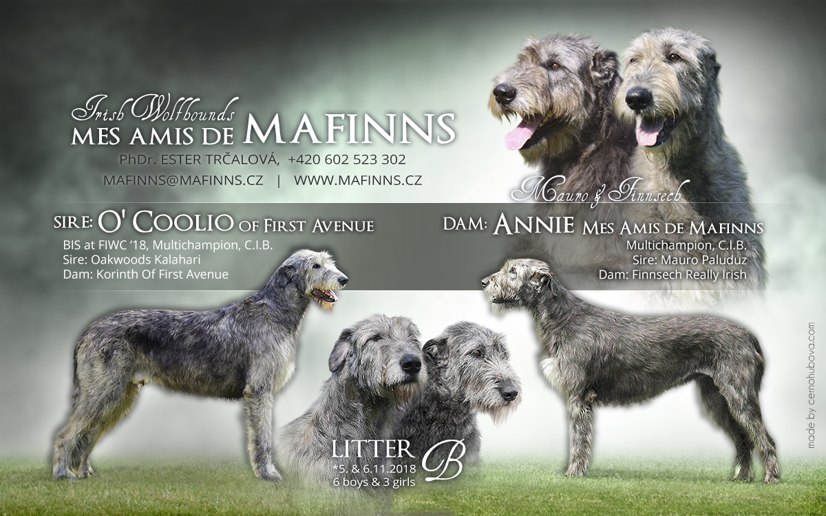 Sire of the litter, which should be born around 7th November, is belgian champion and BIS winner of this years the most prestigeous wolfhound specialty show FIWC in french Le Touquet ( 209 wolfhounds entrered ) - Ch. O' Coolio of First Avenue.