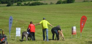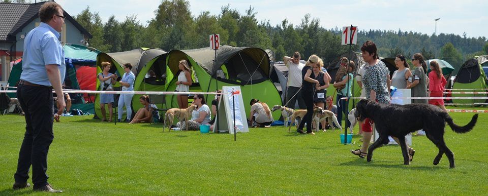 Naše Finnie byla jako jedna ze čtyř českých vlkodavek nominována na ME v coursingu na Slovensku. Tratě se nacházely v náročném, kopcovitém terénu, byly dlouhé a rozhodně ne ideálně postavené pro vlkodavy. Běhalo se za velmi teplého počasí a nutno říci, že ani obsluha navijáku nefungovala právě nejlépe. Ani v těchto podmínkách a navzdory svým 4,5 letům Finnie závod nevzdala a v obou kolech doběhla, což některé mladší nedokázaly. Jsme na ni velmi hrdí! Účastí na ME zakončila Finnnie svou coursingovou kariéru a dál už bude běhat jen pro radost, s Maurem, když se jim bude chtít.