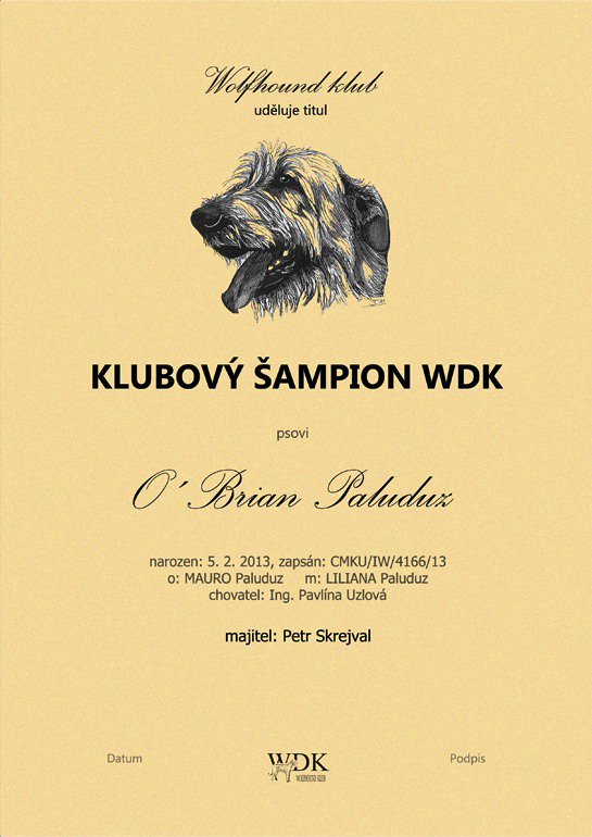 V Náměšti nad Oslavou se konala klubová výstava, kde se Klubovými šampiony WDK stali hned dva z Maurových potomků – Ch. O´Brian Paluduz (m. Liliana Paluduz) a Ch. Four Roses Flintstone (m. Darkness Flintstone). Přidali tak další úžasné dílky do mozaiky úspěchů Maurových potomků. Martině, Petrovi Skrejvalovým a Janě Müllerové moc gratulujeme!
